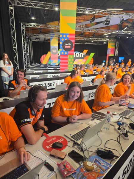 The players jumped behind the phones to take donations, chat with generous callers and encourage Western Australians to dig deep for the state’s biggest charity event.